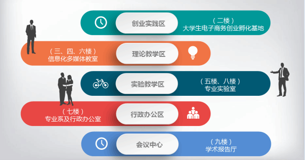 OK138太阳集团实验教学中心位于教学楼2、4、5、8层。实验室规划布局合理,主要分为四个实验区(智慧研讨室+电商直播培育实验区、大数据+传统行业融合实验区、跨专业虚拟商业社会环境仿真实验区、大物流+供应链体验实验区)。