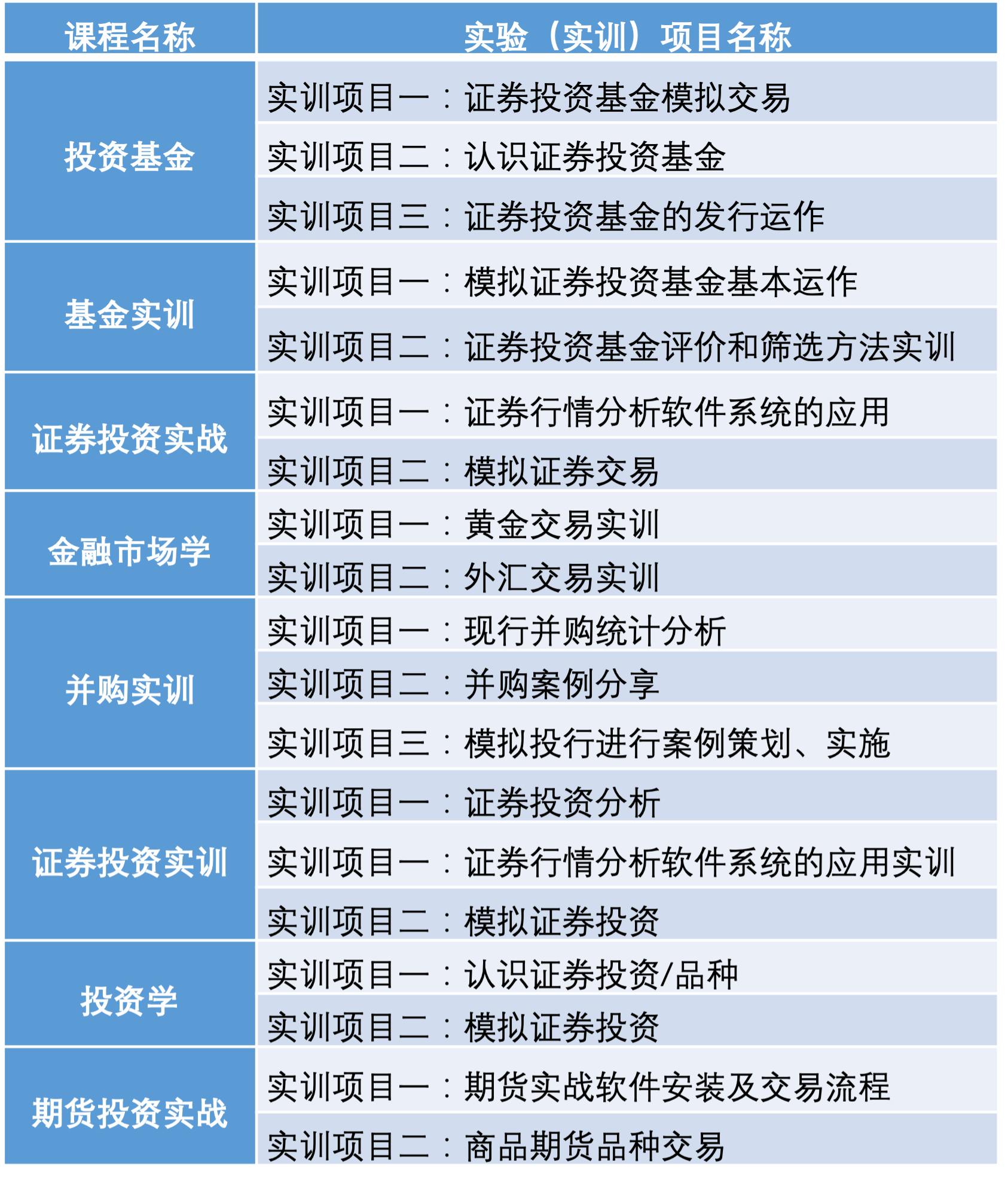 实验室可以服务以下课程:证券投资学、证券投资实训、期货理论与实务、投资基金、基金实训、期货投资实战、金融市场学、证券投资实战、期货投资实战、并购实训和投资学等课程。