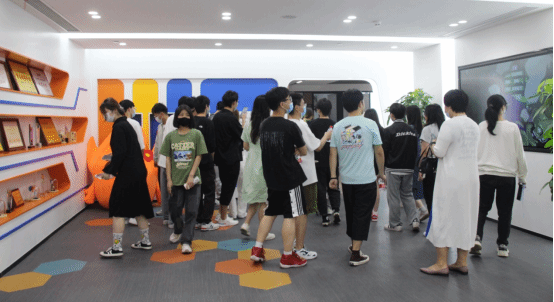 在了解完企业概况后,企业工作人员带领学生们去参观了员工的日常工作场所。在进入企业左侧,展示着企业的使命:创作出打动人心的游戏作品,给玩家以极致体验和简单纯粹的快乐。这样的使命贯穿着整个企业,同时也指引着企业向这个方向不断发展,不断前进。学生们参观了企业的荣誉墙、企业一路走来的发展历程和大事记以及企业内部的工作空间。