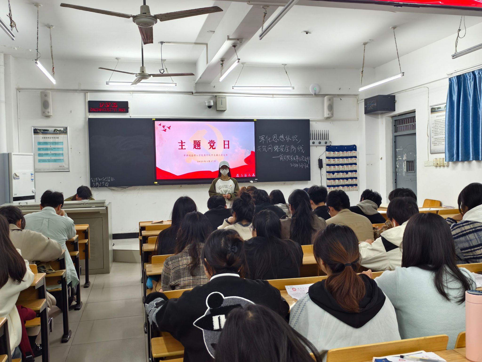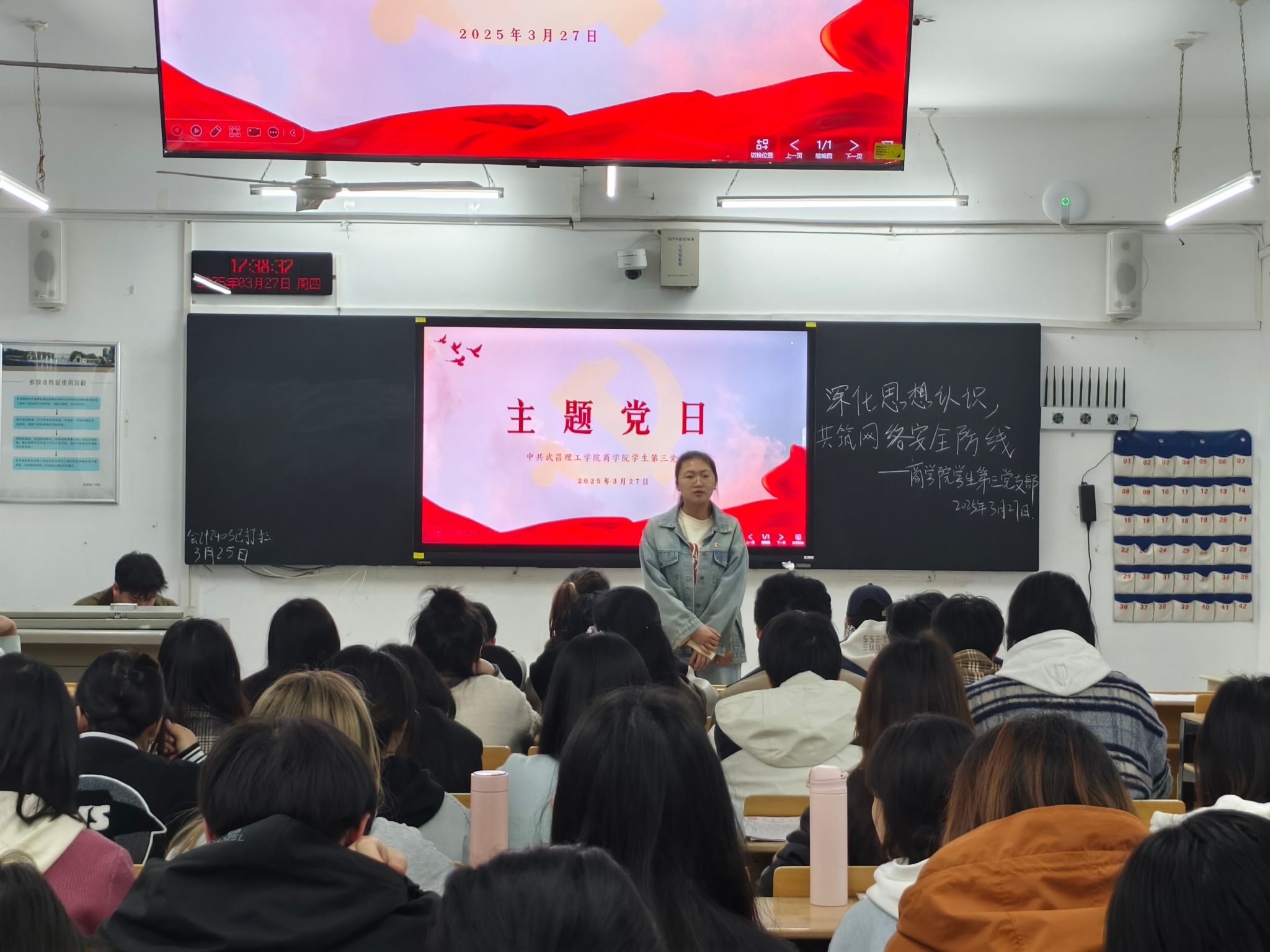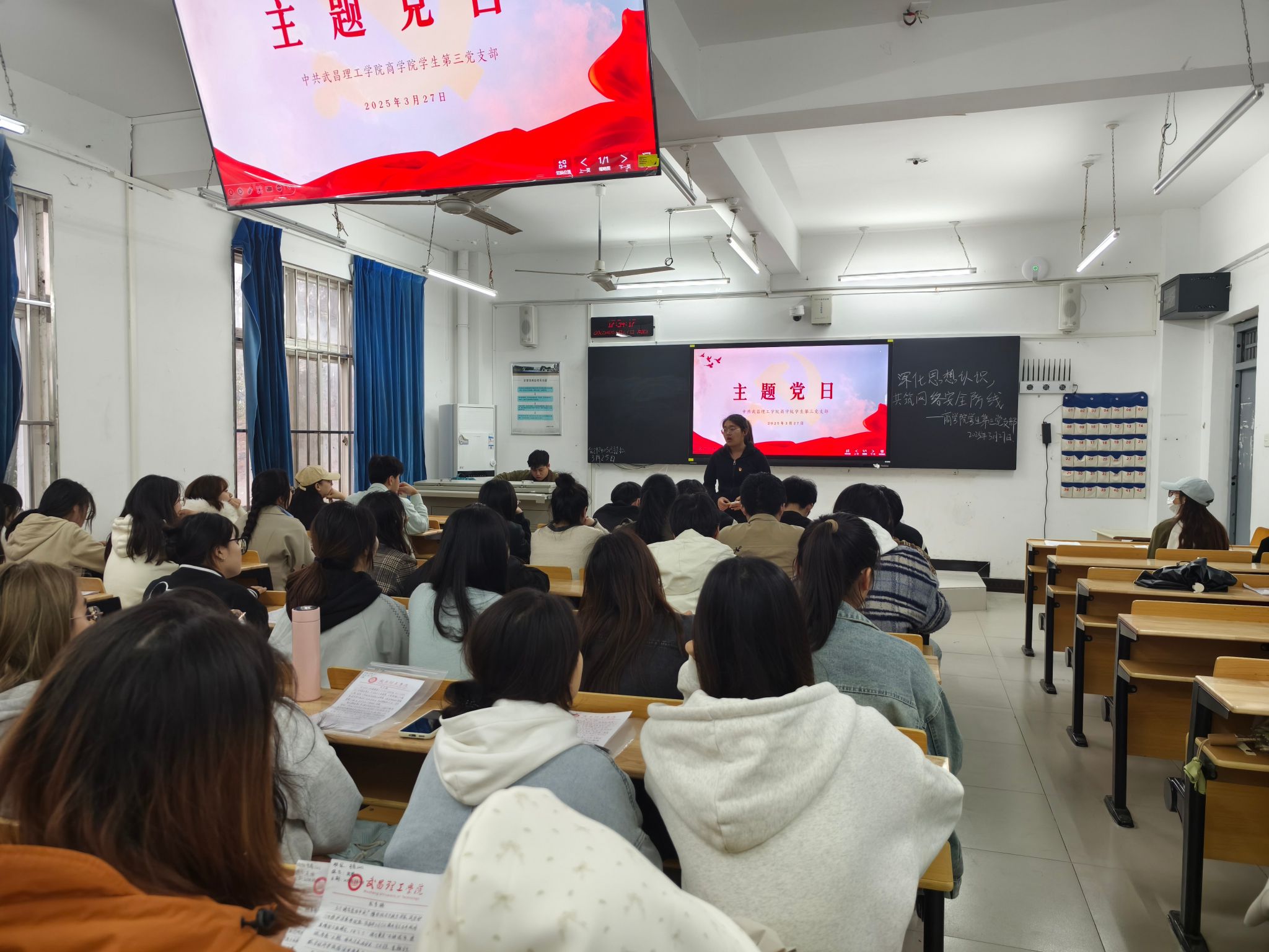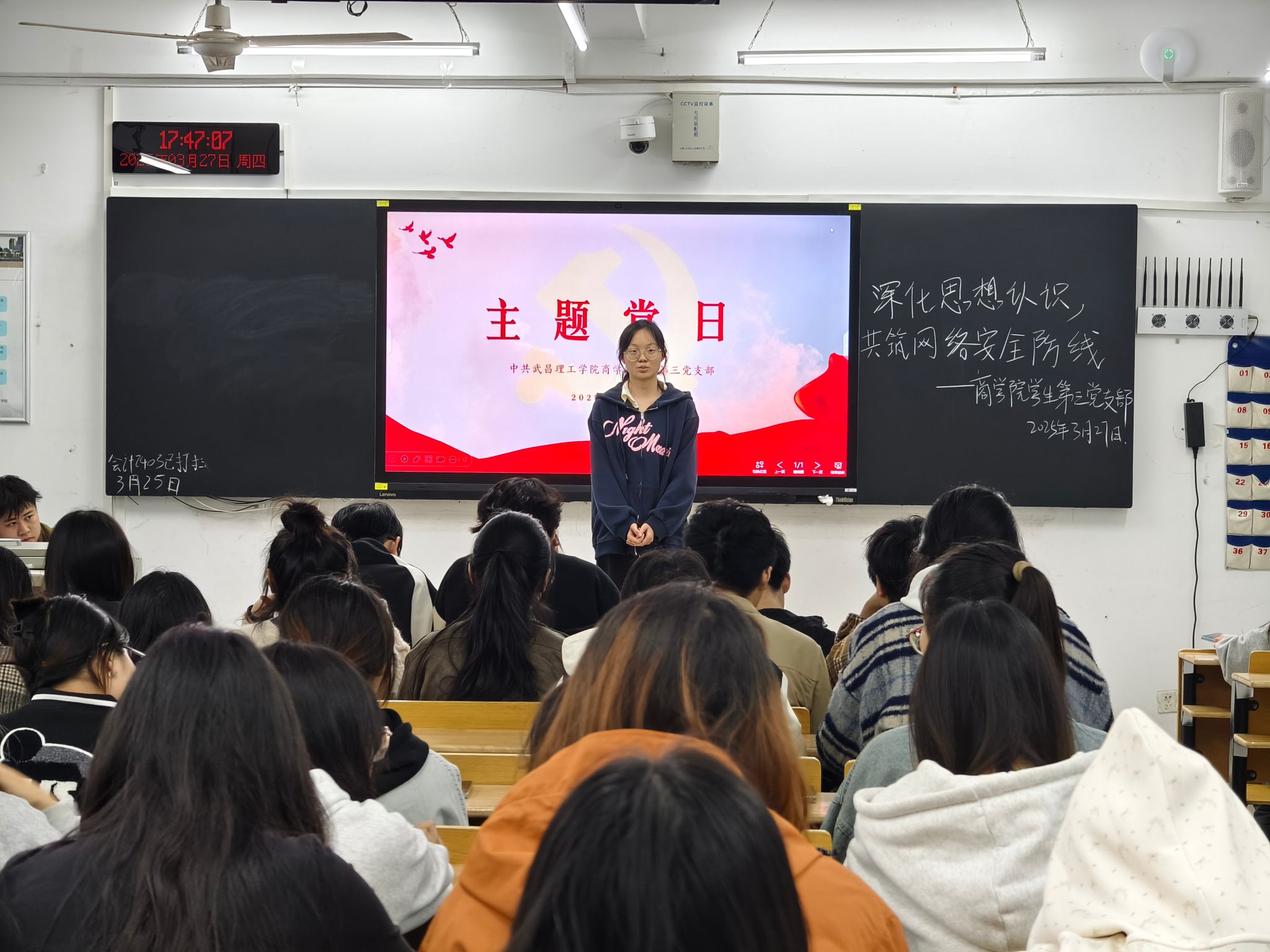 本次主题党日由学生第三党支部副书记王玉娟同志主持。活动伊始,王玉娟同志率先发言,向支部同志传达本次主题党日活动的核心精神,着重强调了网络安全在当今时代的重要意义和严峻形势。她指出,在互联网高度发达的今天,网络安全关乎国家安全、社会稳定和人民群众的切身利益,党员作为时代先锋,需时刻保持警惕,提升网络安全素养,积极抵御网络风险。