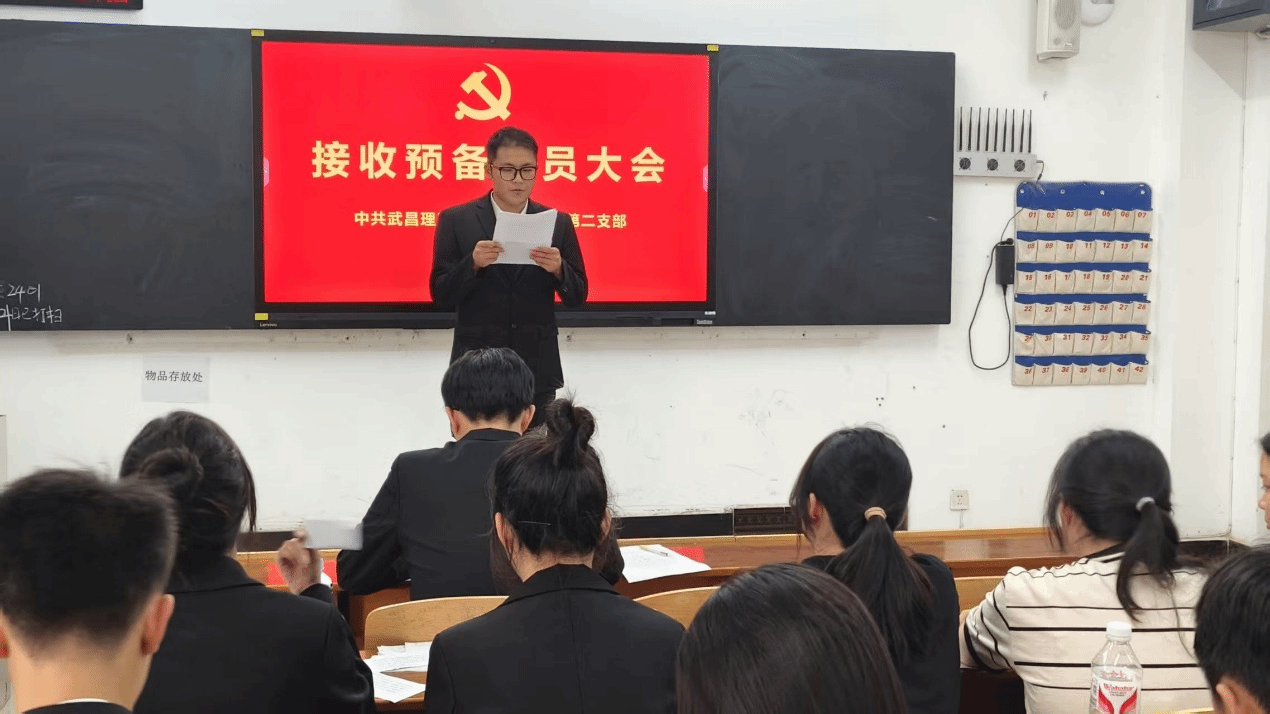 下一项议程是预备党员接收大会。由5名发展对象依次上台提出入党申请,汇报思想情况。发展对象从思想、学习、工作、生活等方面汇报预备期内取得的进步与不足,介绍个人情况,阐明入党动机和表明加入中国共产党的坚定决心。随后由培养人介绍预备党员培养考察情况,与会正式党员发表接收意见。最后,经无记名投票方式表决,5名同志皆全票通过。