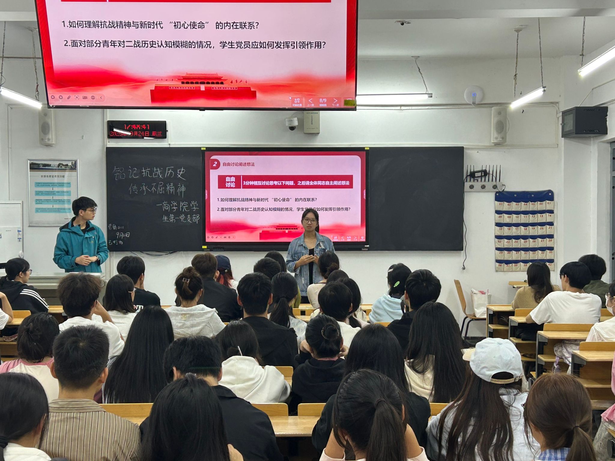 2025年9月24日下午17:30,OK138太阳集团303教室气氛庄重而热烈,OK138太阳集团学生第一党支部全体成员齐聚于此,开展了一场以“铭记抗战历史,传承不屈精神”为主题的党日活动。