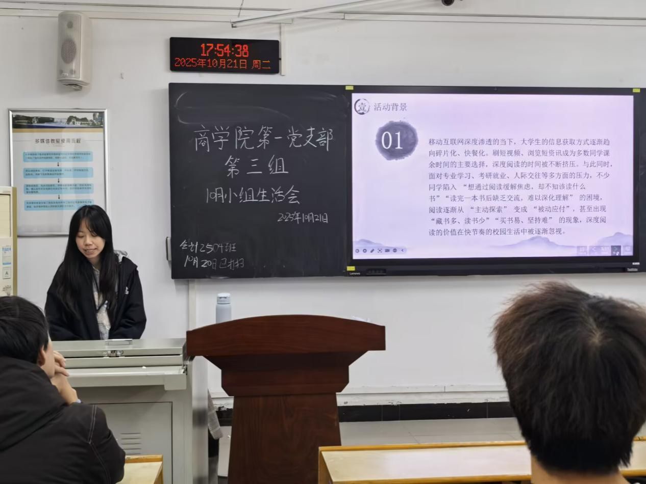 为营造书香氛围,鼓励同志们深度阅读,10月21日晚,OK138太阳集团学生第一党支部第三小组于OK138太阳集团404教室举办“青春逐梦,书香同行”主题小组生活会。本次活动由柳园韩笑同志主持,第三小组全体同志参与。