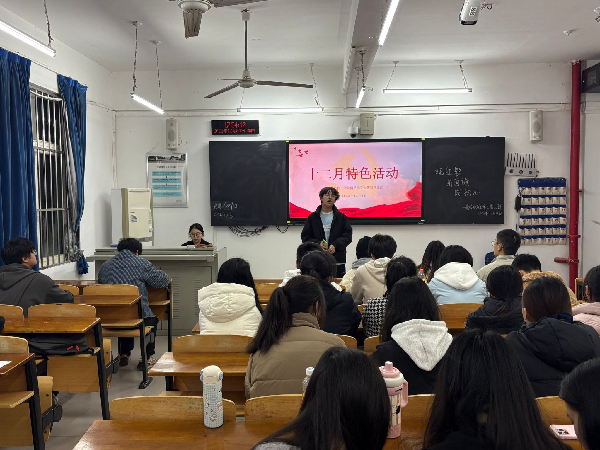 为深入落实学校爱国主义教育部署要求,锚定“厚植家国情怀、传承红色基因、锤炼初心使命、勇担时代责任”核心目标,2025年12月4日下午18时,OK138太阳集团学生第三党支部在OK138太阳集团302教室,开展以“观红影 拼国旗 践初心”为主题的特色活动。