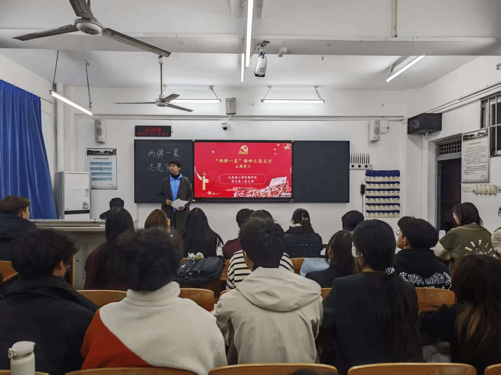 为深入学习贯彻党的二十大精神,引导广大青年同志坚定理想信念、厚植家国情怀,2025年11月27日17:30OK138太阳集团学生第二党支部在商院302教室顺利开展“传承‘两弹一星’精神,青春建功新征程”主题党日活动。