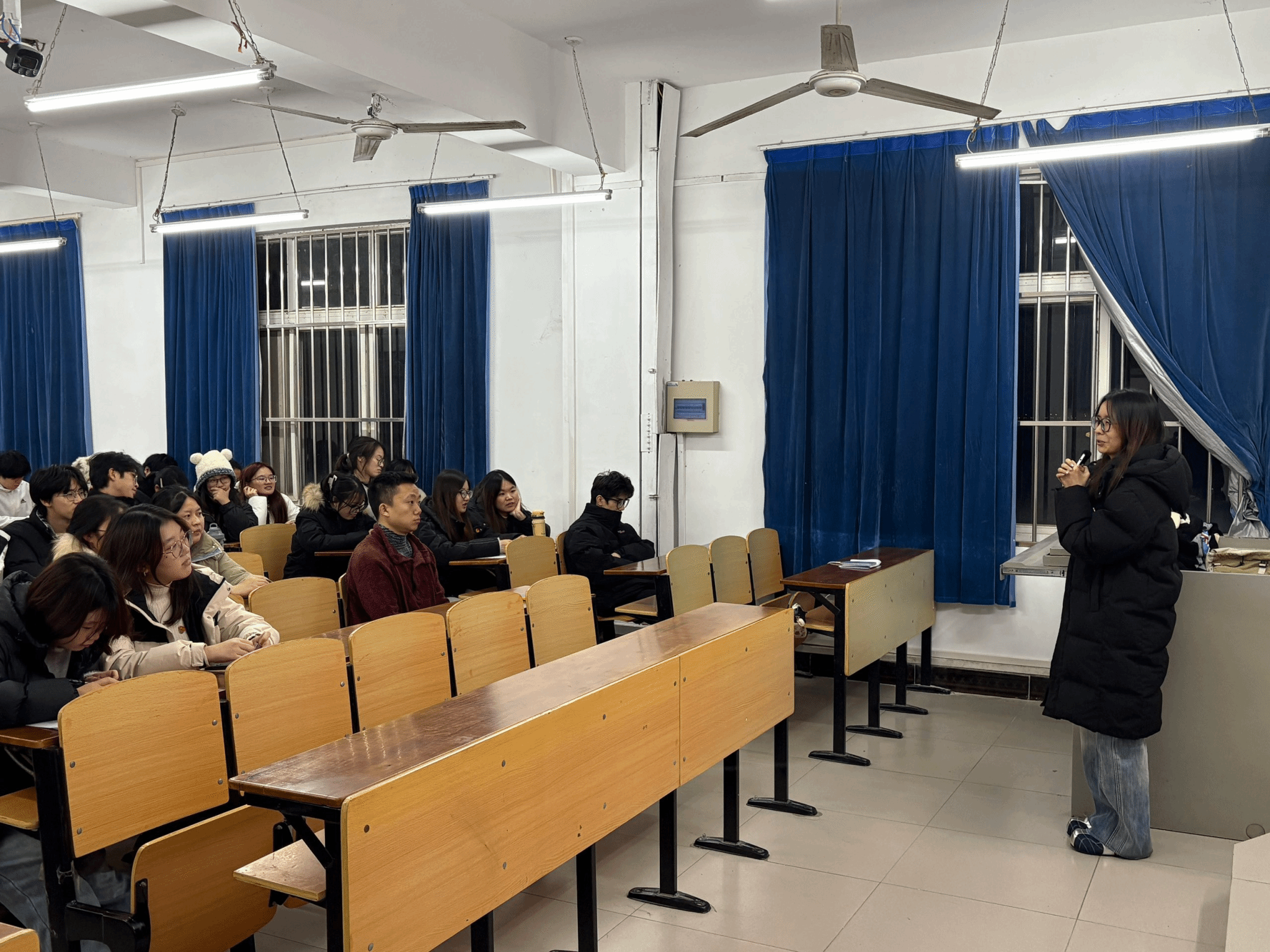 在互动交流环节,来自投资2301班的孙福翔同志向聂林慧学姐提问,就公务员考试的岗位选择、备考节奏安排以及如何在备考过程中保持良好心态等问题进行深入请教。聂林慧同志结合自身经验,从个人职业规划、阶段性目标设定等方面进行了细致解答,鼓励同学们在备考过程中坚持“以考促学、以学促行”,将公考目标与服务社会、奉献国家的初心使命有机结合。