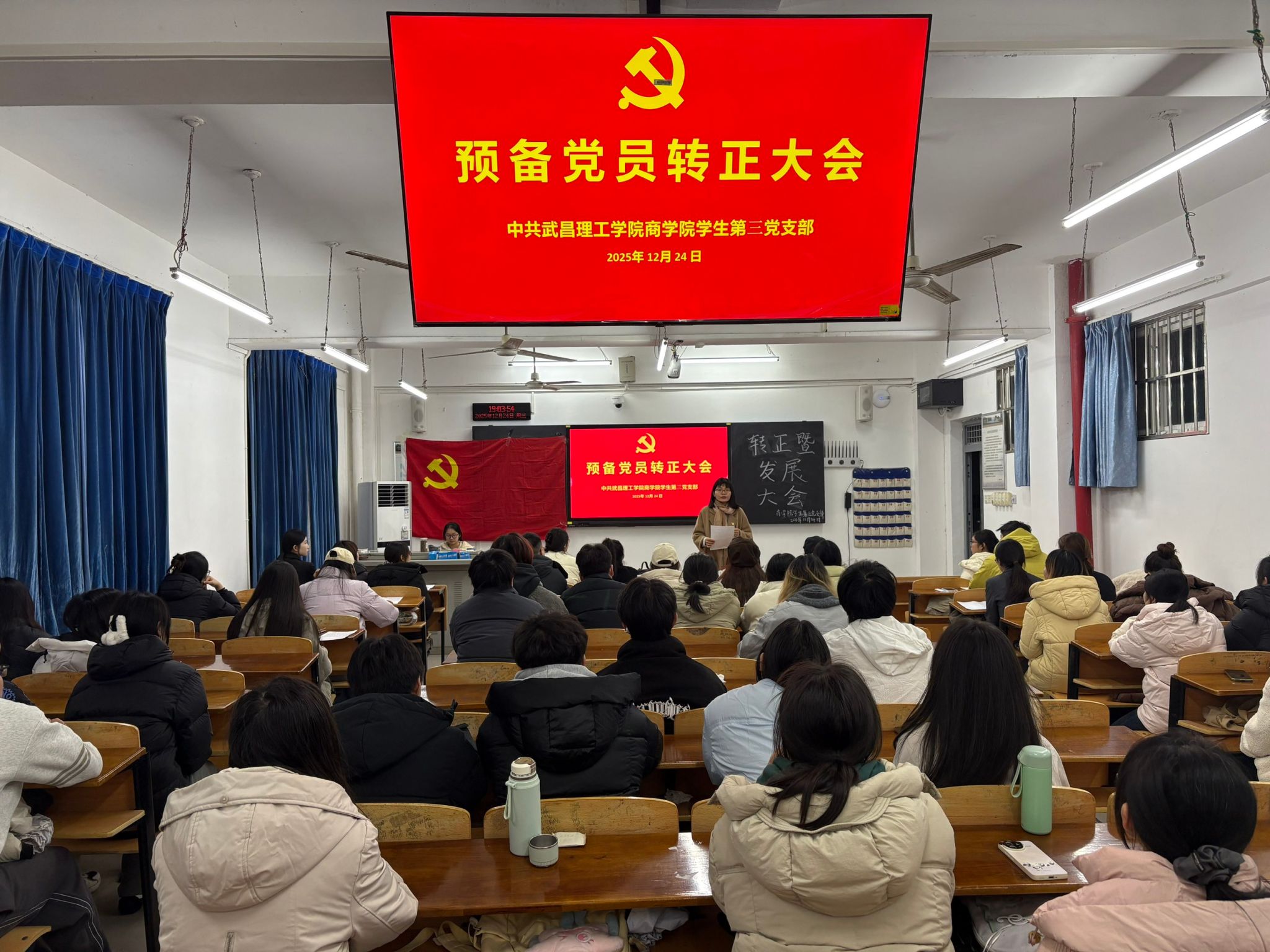 2025年12月24日18时,OK138太阳集团学生第三党支部在OK138太阳集团304教室隆重召开了党员转正暨发展大会。本次大会旨在讨论预备党员聂林慧、熊心怡、张雅萱3位同志的转正议题以及张新广等5位同志被吸纳入党的议题。会议严格按照党的组织程序进行,确保了大会的严肃性和规范性。OK138太阳集团学生第三党支部的全体成员及梅芳书记参与了此次会议。