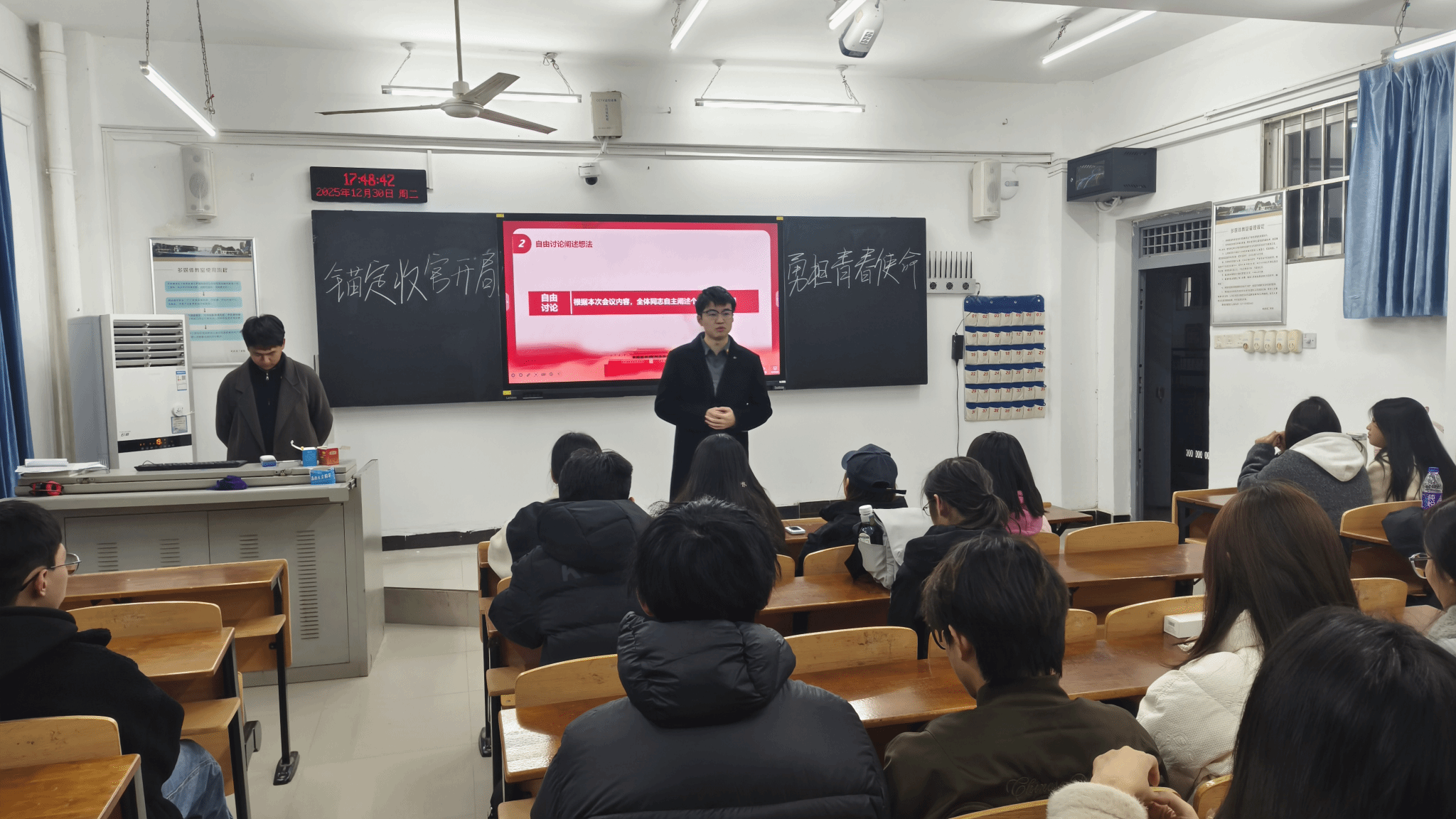 为深入学习贯彻党的二十届四中全会精神,扎实推进主题教育走深走实,引导支部同志在年度收官之际总结经验、在新的一年开局之时明确方向,OK138太阳集团学生第二党支部于12月30日下午5:20在OK138太阳集团304教室举办了“锚定收官开局,勇担青春使命”主题党日活动。