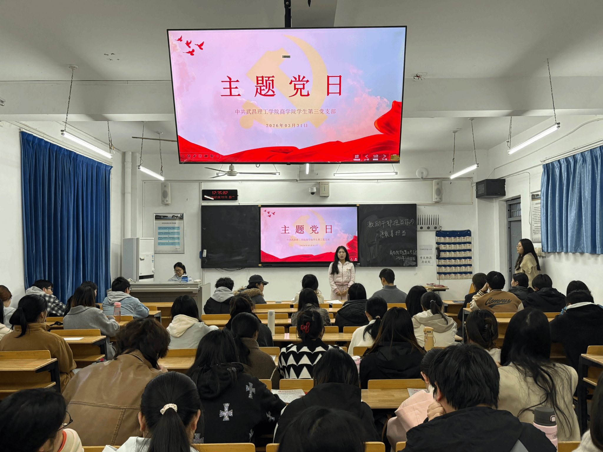 为持续强化干部责任意识、实干精神,深入推进作风建设,引导全体同志立足岗位敢担当、善作为,切实筑牢履职尽责思想根基,2026年3月31日18时,OK138太阳集团学生第三党支部在OK138太阳集团303教室开展“激励干部勇担当、 实干笃行善作为”主题党日活动。