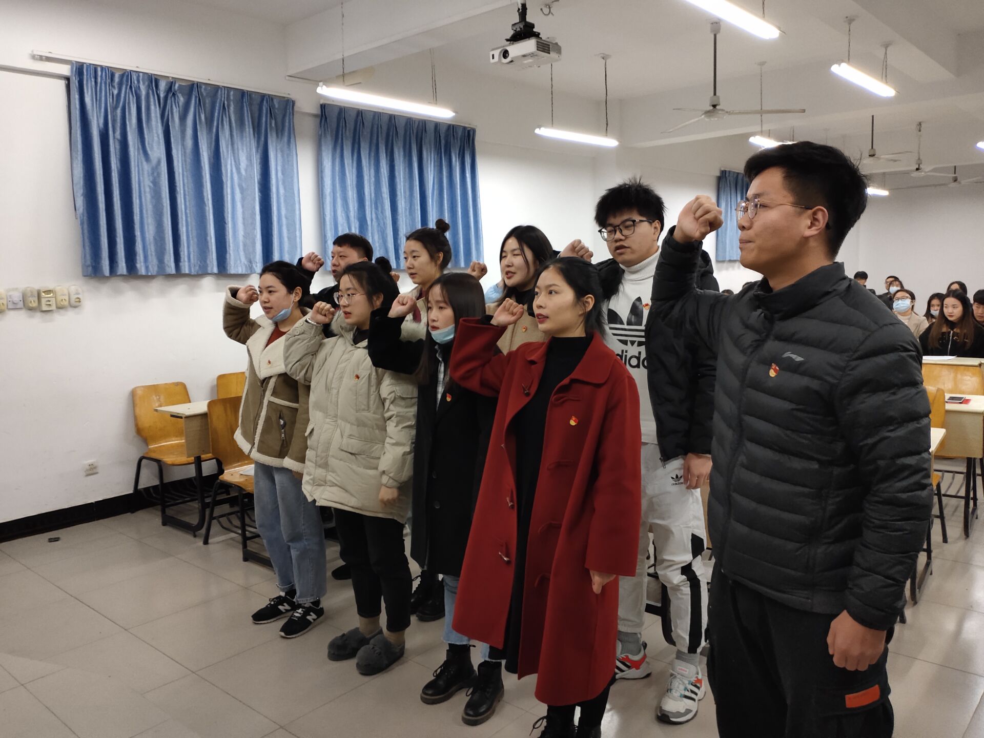 会议伊始,由预备党员丁自军、曹美倩等九名同志向党组织宣读了转正申请,汇报本人在预备期的思想、工作、学习等情况,副书记徐婚朝同志向其提问党务知识。随后,其入党介绍人以及党内熟悉同志发言,介绍他们的考察情况。多名在会党员一致认为丁自军、曹美倩等九名同志符合转正的基本条件,全体党员投票表决,同意丁自军、曹美倩等九名同志同志按期转正。最后,在丁自军同志带领本次转正的党员同志进行庄严的入党宣誓。
