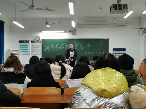 在此之后,18名新加入支部的入党积极分子依次上台进行了自我介绍并简单阐述了自己入党的初心与决心,并表示在今后一定会严格要求自己,听党话跟党走。在各支部委员的带动下,新进支部同志的自我介绍内容丰富,语言中表达了对党的忠诚。