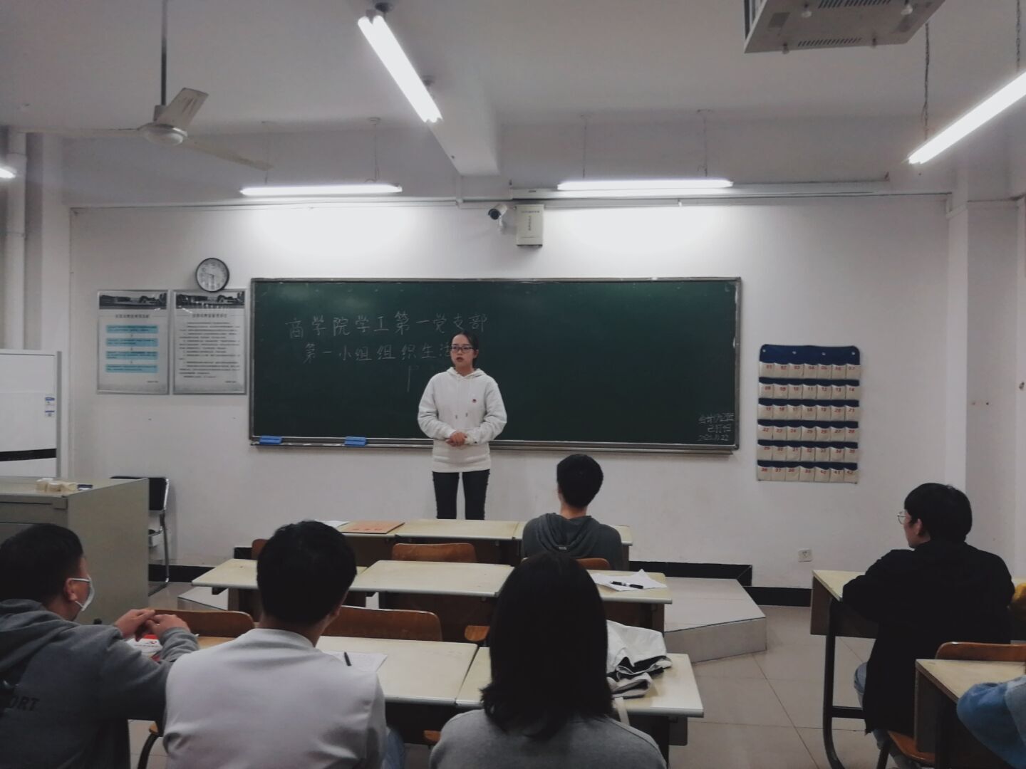 本次组织生活会由吴俊华同志主持,会议伊始,由吴俊华同志介绍了本次组织生活会的流程。第一项是全体第一小组成员起立合唱《我和我的祖国》,随后,吴俊华同志作为代表第一个发言,对自身情况进行了相应的介绍,并向其他同志阐述了自己的入党动机。随后,由新进积极分子们依次上台发言。陈彦希同志分享道,在进入支部以后,自己的心态其实会有稍许动摇,在面对突如其来的各种材料书写时,自己有想过要退缩,但最后依然决定坚持下去,克服困难,将所有要上交的材料在规定时间内全部上交完毕。其余新进积极分子也积极上台发言,阐述了自己的想法。入党的道路就是这样,总会有各种各样的事情会让人焦虑,但最重要的还是要学会克服困难,自己要学会管理自己,戒骄戒躁,只有这样,才能努力成为一名优秀的、合格的共产党员,才能向前更进一步。