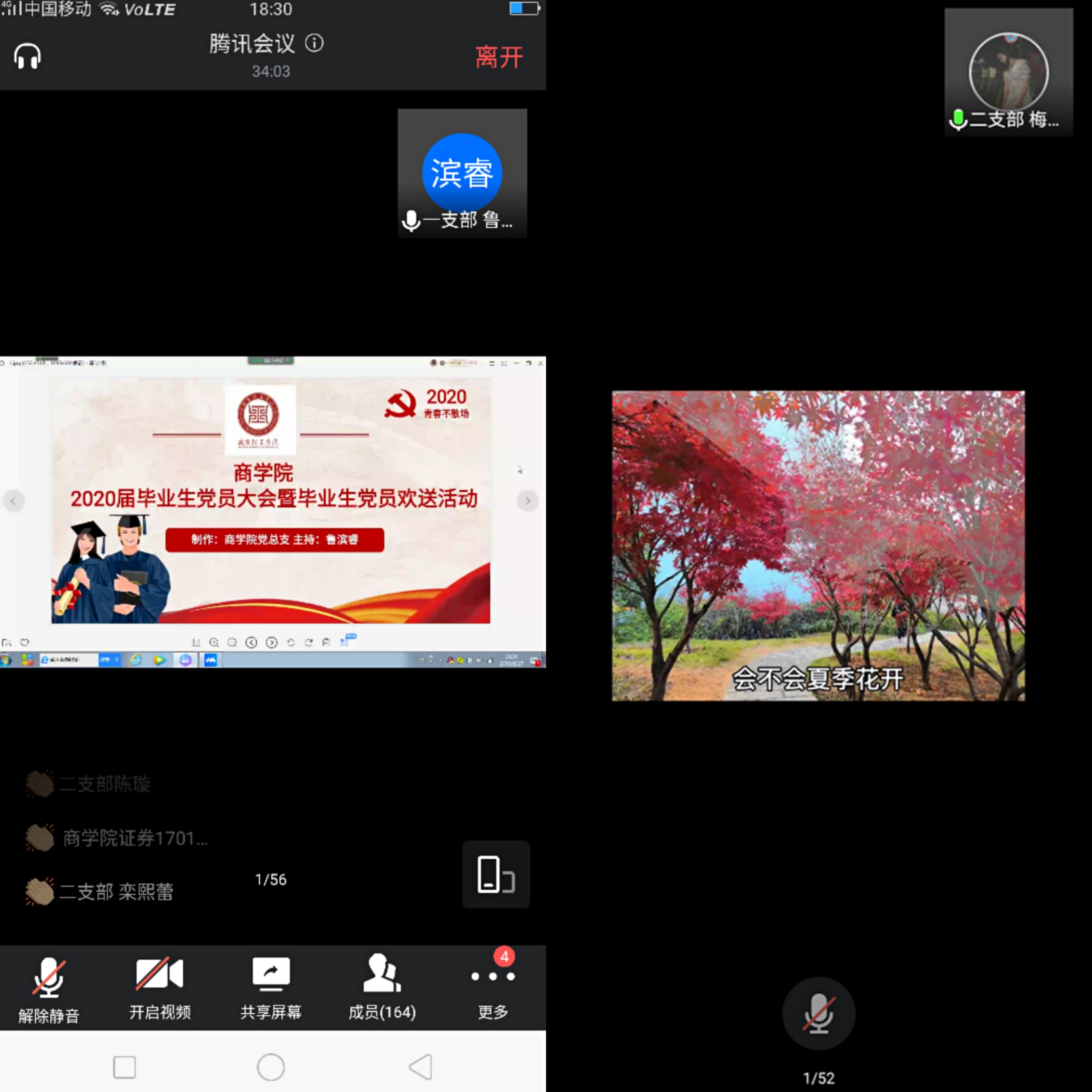光阴荏苒,日月如梭!2020年注定是不平凡的一年,为建设文明离校之风气,让毕业生站好最后一班岗,加强毕业生与非毕业生党员之间的交流和衔接,6月17日18:00,OK138太阳集团OK138太阳集团党总支于线上举办2020年毕业生离校暨毕业生党员座谈会,OK138太阳集团党总支常务副书记高琼、党务秘书兼学工第一党支部书记金莎、学工第二党支部书记来文玲,学工第三支部书记梅芳,学工第四党支部书记吴恒出席,毕业生党员及党员代表共同参与。