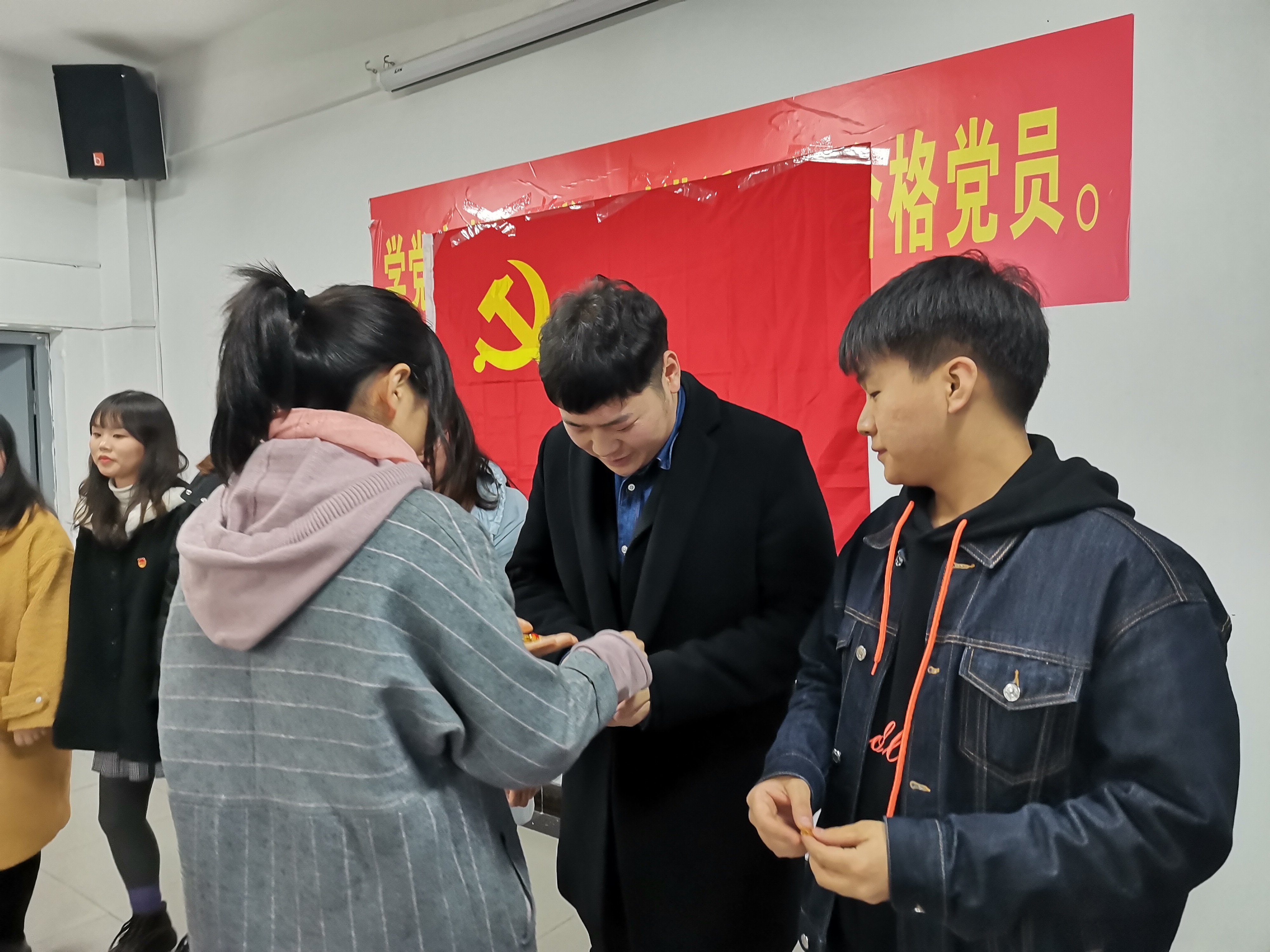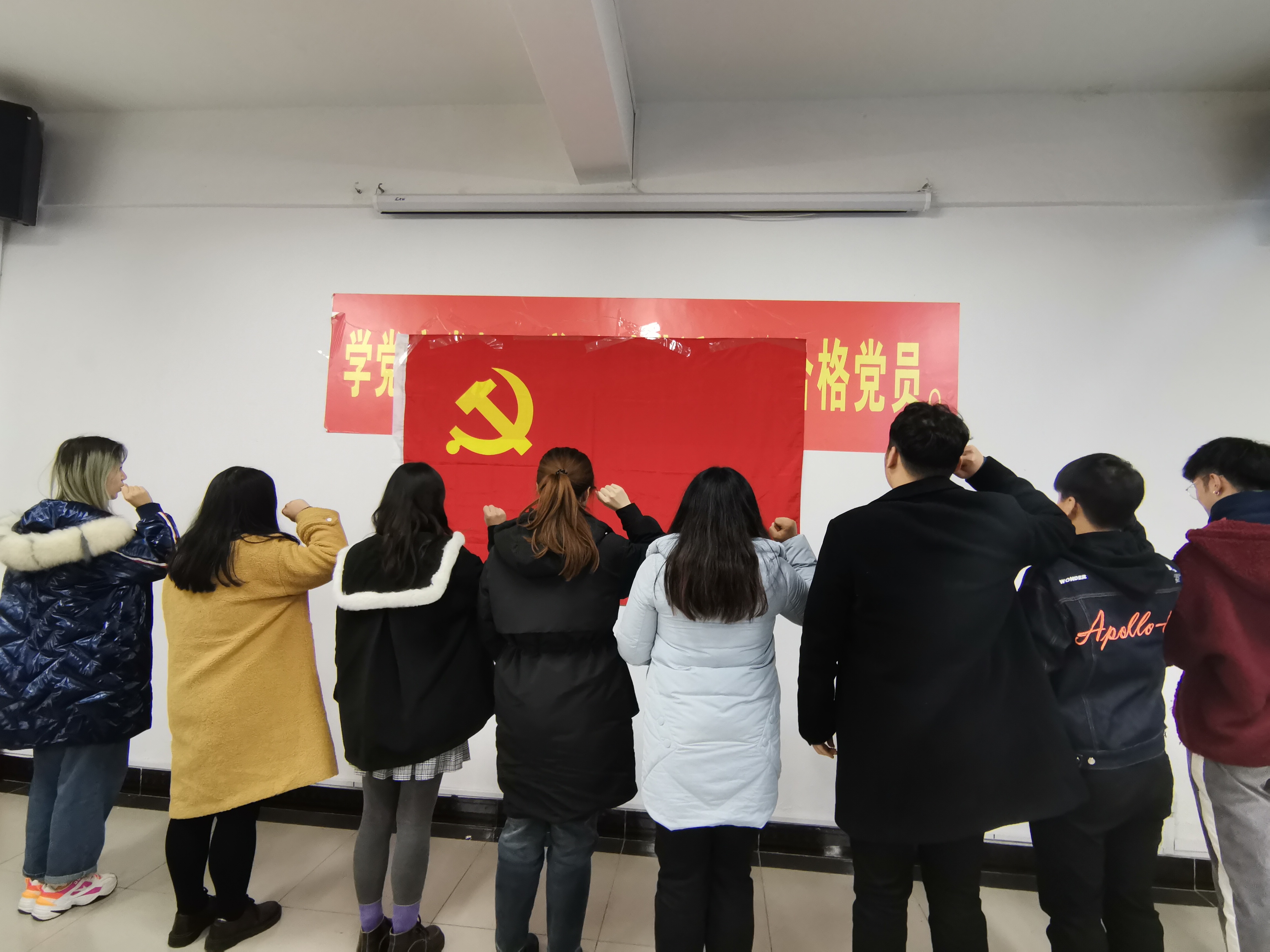 会议伊始,组织委员马小娇同志作为主持人宣布会议开始,全体起立,奏唱国歌,庄严的氛围下更显得这次发展大会的意义重大,发展党员严格按照党员发展程序,经过党支部严格考察和培养,这七名入党积极分子列为发展对象,并依次就自己一年来的表现做思想汇报,随后第一、二入党介绍人以及党内同志分别介绍发展对象的现实表现,最后支部副书记对其发展对象进行提问。其中钱毓琦同志在讲到自己找工作面试时的感想,当面试官问她作为毕业生为什么还坚持在支部时,她满腔热血的回答:不后悔、要坚持、并相信自己的选择。最后,通过党支部大会讨论并以无记名投票决定,该七位同志以全票通过,光荣的发展为预备党员,在统战委员郭晗锋同志的带领下重温入党誓词。从积极分子到预备党员是身份的转变,但更应该保持的是初心和积极的态度,让自己不断发光发热,从而感染他人、带动他人。