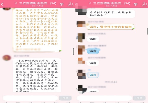 此次主题党日长达一个半小时,就疫情防控展开了深入的讨论。活动在党支部副书记陈家诗的带领下有序的进行着,据了解,第三党支部有四名同学参与到了疫情防控的工作中,他们是会计1605班梁敏、会计1701班王甜、会计1701班邓景文和会计1702班熊少康,在线上语音中,四位同学分享着自己在疫情防控工作中遇到的困难和收获的喜悦,他们虽然没有前往武汉进行志愿服务,但是在社区,在村里,他们也尽着自己的一份力,为疫情防控工作做出贡献。随后,第三党支部的QQ群里开始了热烈的知识问答环节,“病毒会存在电梯和手机按键上吗?”、“带毛领或绒线的外套更容易吸附病毒吗?”、“出门玩雪会感染新型冠状病毒吗?”等等一系列的问题袭来,支部的成员们纷纷在下面回答问题发表着自己的见解。