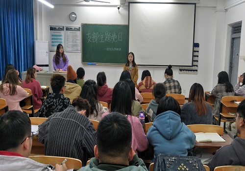 会议伊始,全体人员起立,奏唱国歌。随后,进入会议第二项,重温入党誓词。李梦玉同志主动站起来,带领大家进行回顾。之后,主持人向大家介绍了十九届四中全会的会议精神,短短十几分钟的介绍学习虽然不能将全会精神都学习透彻,但也能让同志们有所了解。介绍完毕后主持人就开始随机选人回答问题,同志们也都非常的积极,一个问题的提出总能得到多个人的回答。随着一个又一个问题的提出,支部会议也开始进入高潮。紧接着互动讨论交流及上台发言的环节来临,在这个时间段,数名同志上台演讲,与大家分享了自己的观点和看法。会议渐近尾声,主持人在大家发言完毕后对本次会议进行了总结,她表示:“虽然在会议上我们的学习时间有限,但在平时我们却有很多时间可以来学习,希望大家课下能多多关注时事政治,了解我国的新闻动态,不断提升自身的党性修养。”