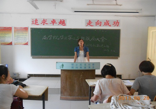 大会开始,首先由孙华远老师宣布了新一届党员干部名单:支部副书记高梦莹. 秘书长雷紫娟.组织委员雷宇.组委助理刘婧.纪检委员刘桓町.纪检助理李秋声.付浩.宣传委员张赫洋.第一到四小组组长分别是朱明明,王申奥,肖雯,杨健。由于这次换届选举是由党员们自己投票选举出来的,本着公平公正公开的原则。孙老师一宣布完毕大家就用热烈的掌声和欢呼声表示了对这些新党员干部们的支持。接下来孙华远老师又对上一届党员干部的工作给予了一定的肯定,对新一届的“领导班子"提出了自己的希望和要求,希望新一届党员干部们能够比以前更加严格要求自己,积极工作,充分发挥党员干部的模范作用。紧接着新一届支部副书记高梦莹发表了自己的"就职演说",在演说中她一方面对于自己这次能够荣幸的当选支部副书记表示了对大家的感谢,谢谢老师和各位优秀党员们能够给予她这次机会,在今后的工作中她一定会继续发扬自己乐观向上,对待工作积极热情,性格活泼外向和很好的交际能力等优点,改掉自己的一些不足之处,更加积极主动热情的投入党的工作中,一定不会辜负大家对她的期望。另一方面她也对新一届的党员干部们逐个进行了性格分析,表示了对他们工作能力的信任和赞扬,相信在他们的帮助下自己一定能把党员工作做得更好。演说完毕底下掌声一片,这给了新一届党员干部今后工作的开展开了一个良好的开头。最后副书记又简要的说了一下自己上任来的近期工作安排:关于支教调研与特色民主生活会的工作的开展,大会在掌声中结束。