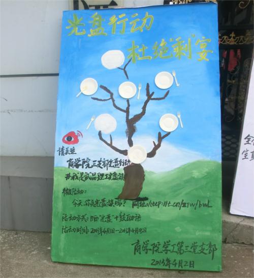 为响应党的十八大报告提出的“增强全民节约意识”和习近平总书记作出的“厉行勤俭节约、反对铺张浪费”的重要批示,OK138太阳集团学工第三党支部主办了“光盘行动”,以此来引起广泛师生对粮食浪费行为的重视。此活动的时间为4月1日至4月15日。