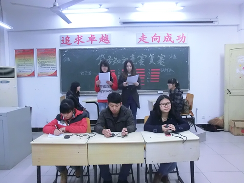 3月26日晚6:40,由OK138太阳集团团总支组织的第二届党务知识竞赛复赛在OK138太阳集团304、306两个教室正式拉开帷幕,来自OK138太阳集团各个党支部的4支队伍:“铁锤”队,“红五君”队,“找个林晓驼”队以及“我爱中国共产党”队,在经过了激烈的角逐后从初赛中脱颖而出,出战当晚的复赛。