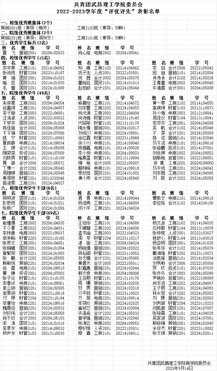 2022-23学年度“评优评先”表彰名单