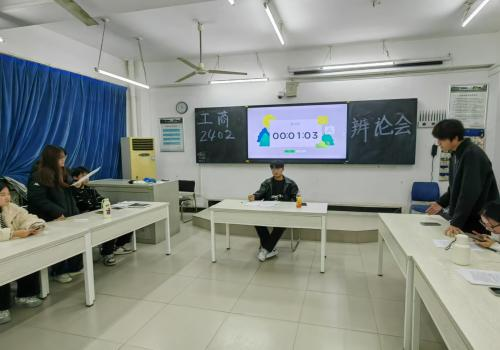 据了解,宣传委员范湘担任此次辩论赛的主持人,路驭喆担任此次辩论赛的评委,正方选手分别为:王晨阳、王晓琳、张玮、邵光明,反方选手分别为:刘俊威、李阗祎、庄家怡、曹家辉。观众为素质导师助理刘展鹏和工商管理2402班全体同学。