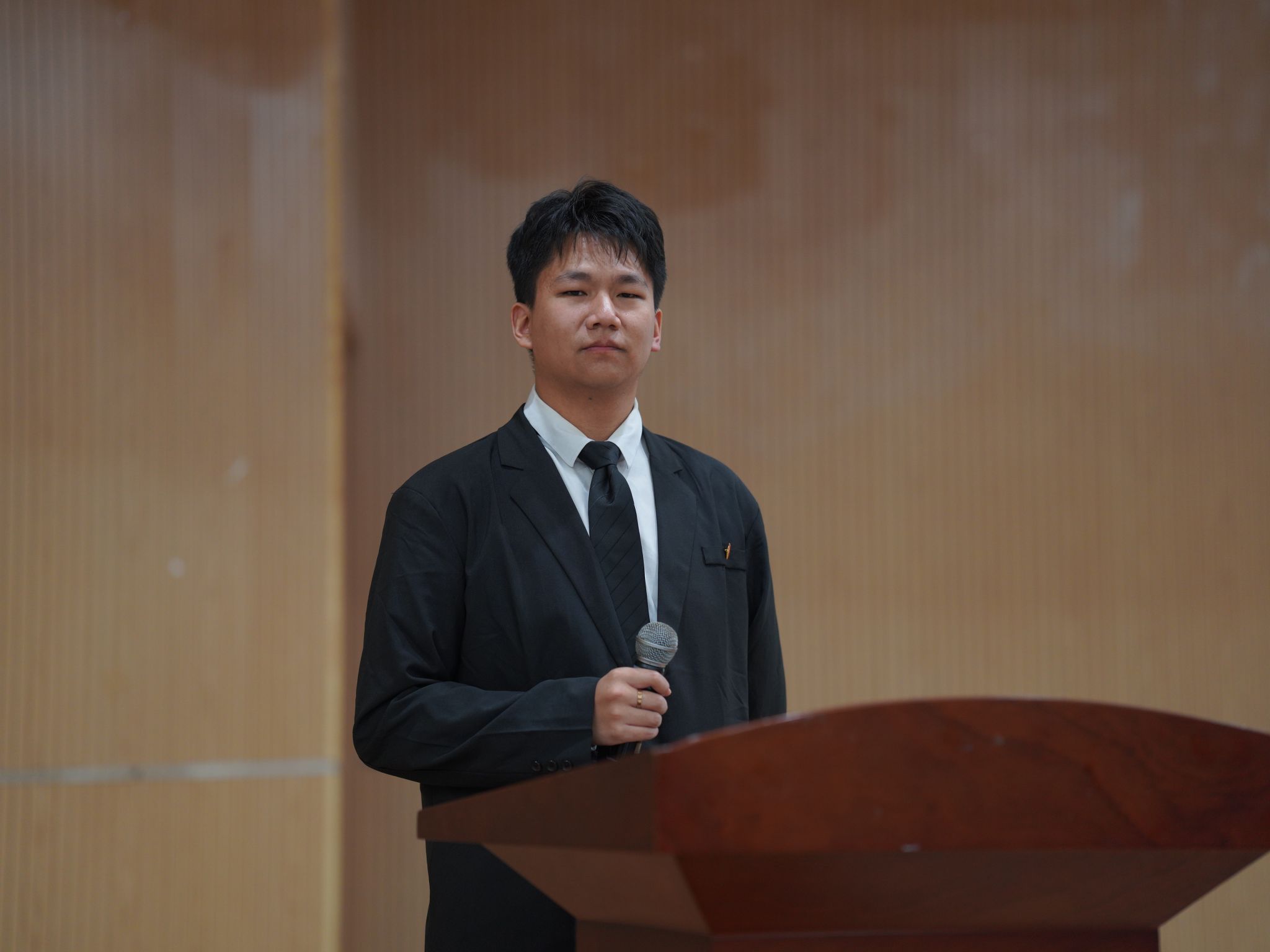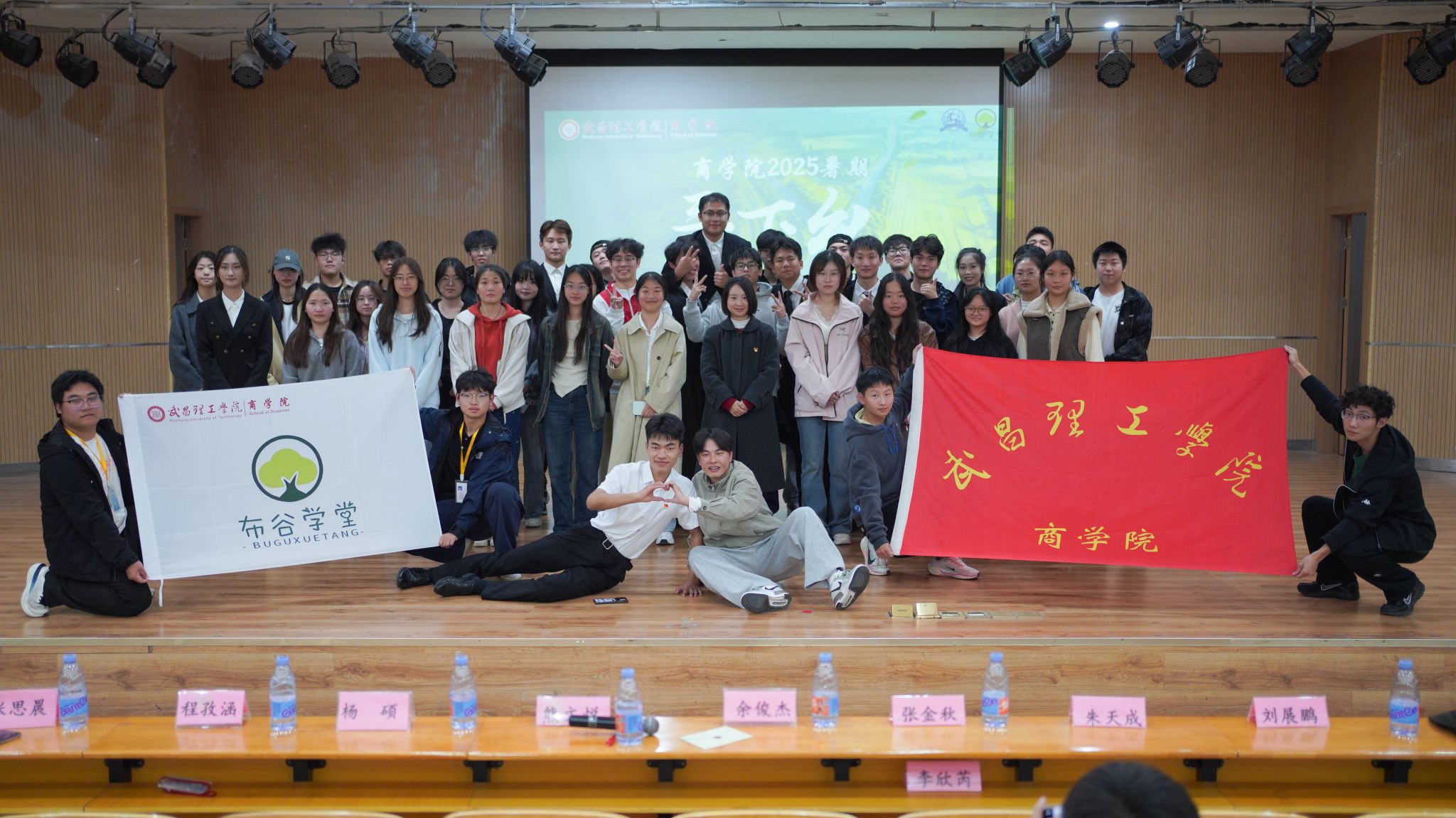 在实践成果汇报环节,五支社会实践团队依次登台,结合图文影像与实地记录,生动呈现了暑期实践的丰硕成果与深切体悟。其中,“数商兴农”实践团赴武汉市蔡甸区张湾街道,开展水蜜桃产业宣传与数字化建设,助力特色农业提质增效;“财商启蒙”美丽中国实践团走进通城县,通过金融知识普及与实景教学,为乡村青少年播下商业素养的种子;“心聆益语”志愿服务队聚焦留守儿童心理健康,举办多场心理讲座与家庭教育指导,赢得广泛社会认可;“绿色先锋”实践团在咸安区推动垃圾分类与环保宣传,累计服务超500小时,以实际行动践行生态理念;“梅南薪火”党史宣讲团深入基层开展红色文化宣讲与普法教育,传承革命精神,筑牢理想信念根基。
