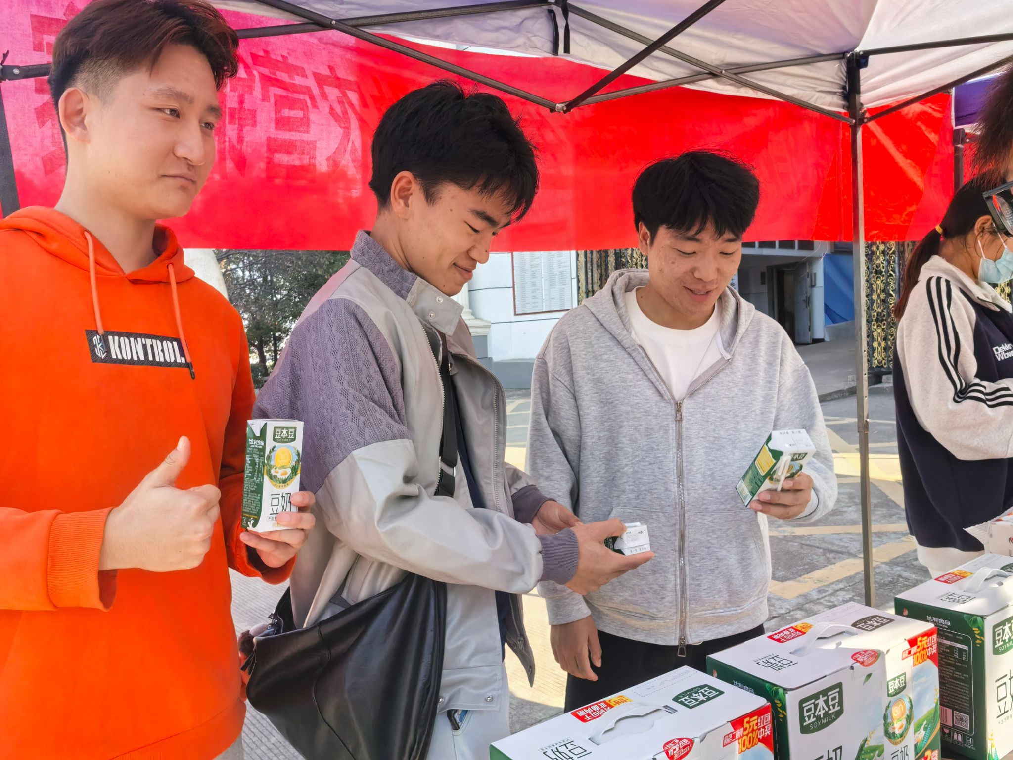 复赛以“实战砺能,营销筑梦”为主题,以实战营销为核心,本次推广商品有豆本豆原味豆奶、心相印面巾纸等商品。在活动筹备阶段,营销协会的学生骨干们精心布置现场,将商品整齐有序的摆放在桌上,整洁的陈列与营销协会的学生骨干们的热情服务,迅速吸引了许多学生前来咨询。