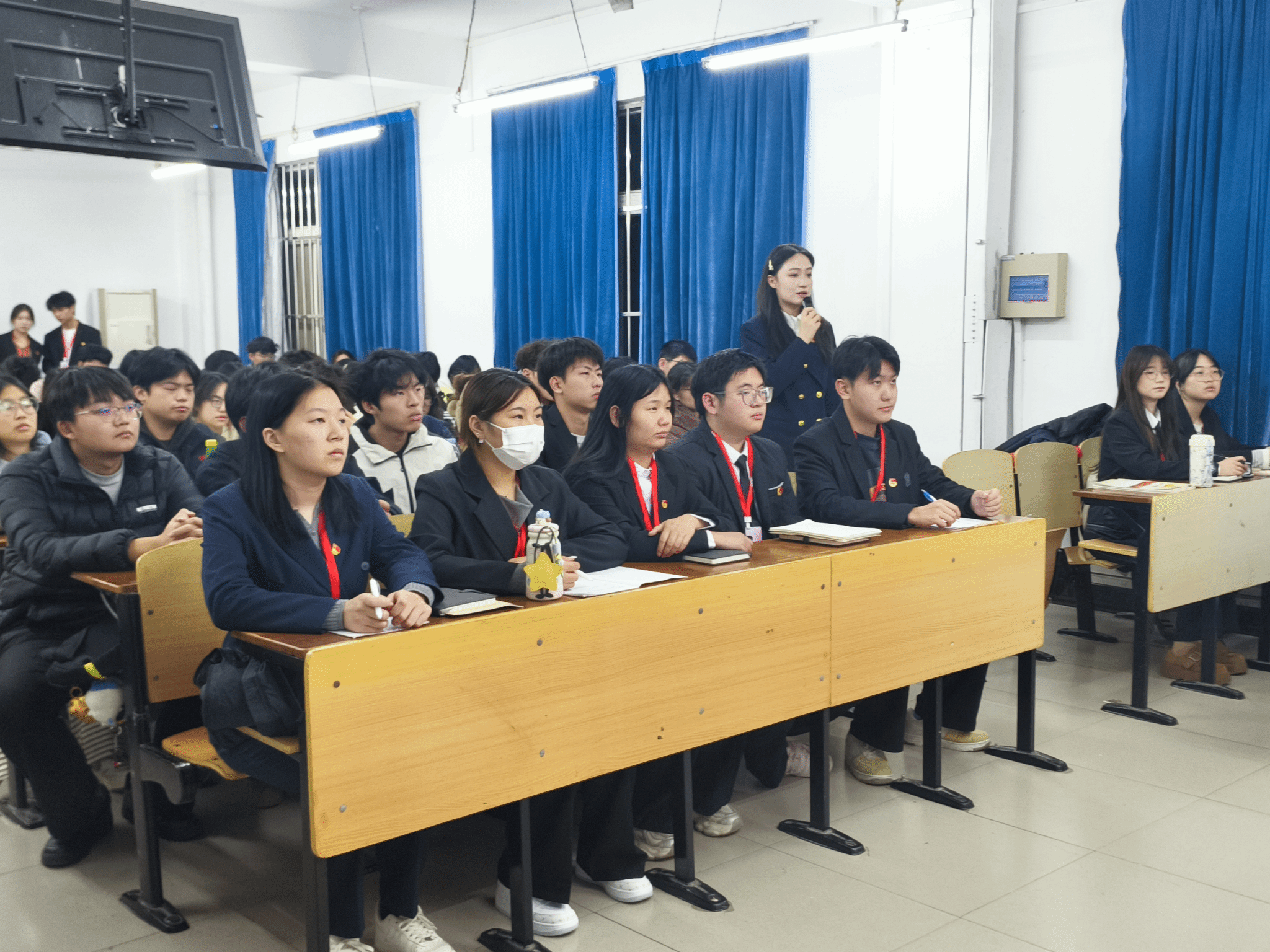 宣讲会上,青马学员结合自身实践经历展开分享:从 “百生讲坛” 的理论宣讲传播思想火种,到 “欢送毕业生晚会” 的服务奉献诠释责任担当,从暑期 “三下乡” 赴咸宁大坪乡达韦村小学支教的暖心实践,到参与 “百名师生讲党史” 线上线下宣讲的创新探索。一个个鲜活的实践故事,生动勾勒出青马学子在理论学习与实践锻炼交融并进中的成长轨迹。