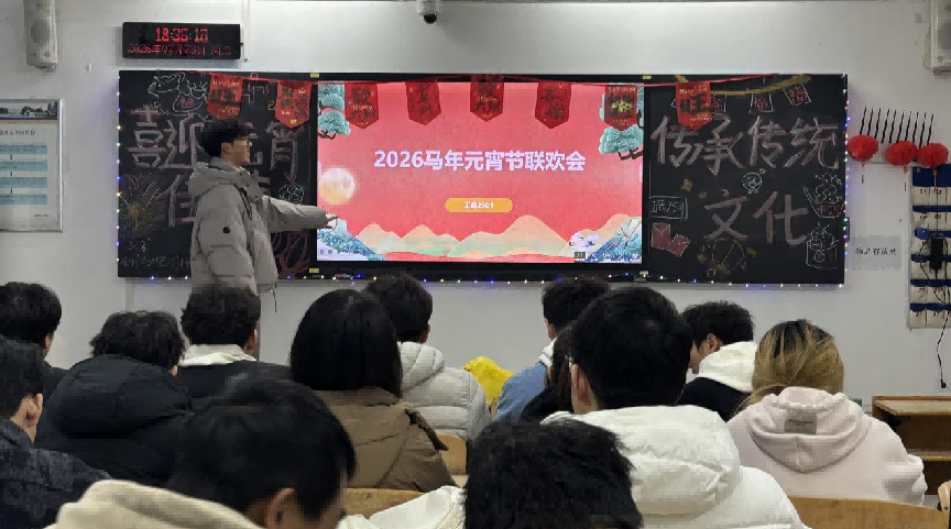 活动临近尾声,在主持人华皓铭的邀请下,大家手持亲手制作的灯笼与手工作品,一同来到黑板前集体合影留念。快门声响起的瞬间,不仅定格了元宵活动的温暖画面,更记录下工商2501班的团结与温情。不少同学因求学客居他乡,无法与家人共度佳节,而这场温馨的活动,让大家在集体中感受到家一般的温暖。