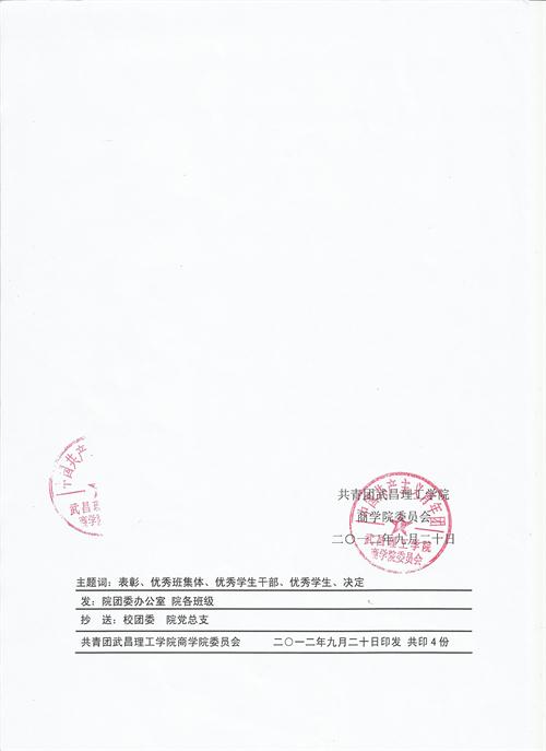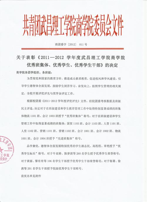 关于表彰《2011-2012学年度OK138太阳集团优秀班集体、优秀学生、优秀学生干部》的决定