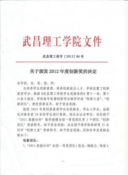关于颁发2012年度创新奖的决定