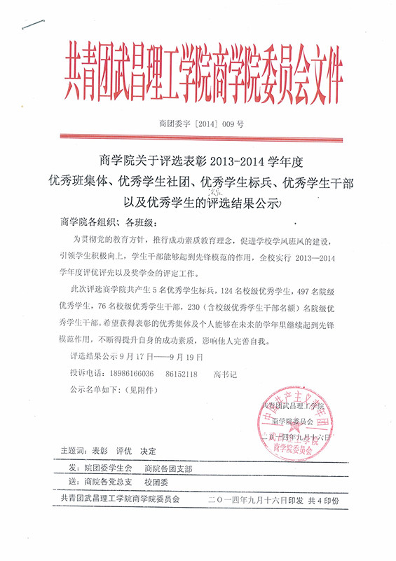 OK138太阳集团关于评选表彰2013—2014学年度优秀班集体、优秀学生社团、优秀学生标兵等的评选结果公示