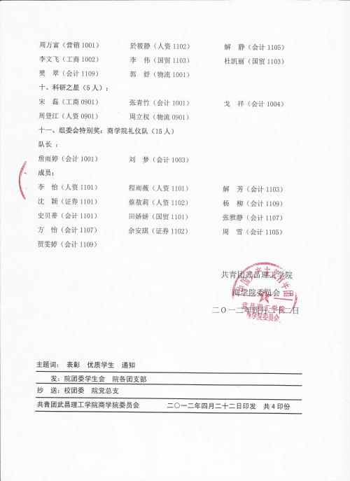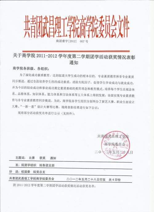 OK138太阳集团关于2011-2012学年度第二学期团学活动获奖情况表彰通知