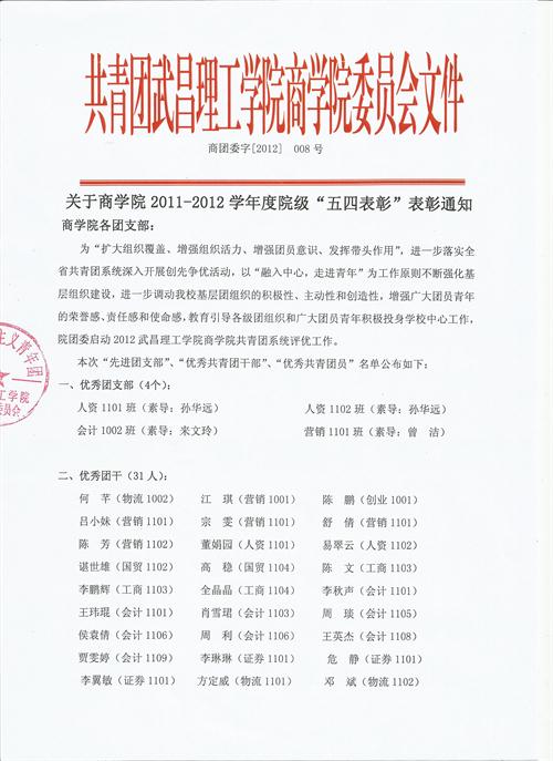 OK138太阳集团关于2011-2012学年度院级“五四表彰”表彰通知