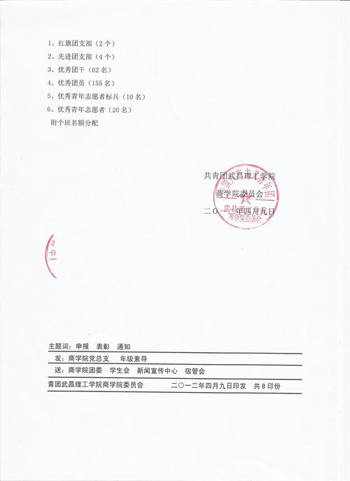 OK138太阳集团关于2011-2012学年度红旗团支部、先进团支部、优秀团干、优秀团员等表彰的通知
