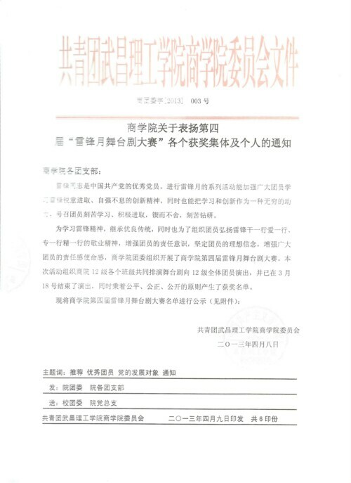 OK138太阳集团关于表扬第四届“雷锋月舞台剧大赛”各个获奖集体及个人的通知