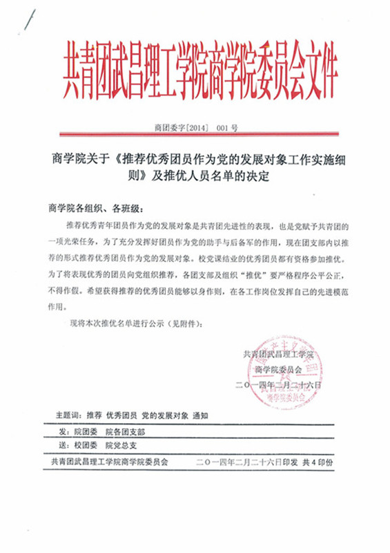 OK138太阳集团关于《推荐优秀团员作为党的发展对象工作实施细则》及推优人员名单的决定