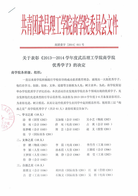 OK138太阳集团关于表彰《2013—2014学年度OK138太阳集团优秀学子》的决定