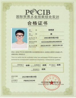 以赛促学,强化数字化技能应用实操,优化人才培养质量。国贸专业以专业竞赛为平台撬动课堂、企业与市场,构建以学术型教师、“双师型”指导教师、企业导师为一体的导师体系,并将课堂教学、竞赛成果和实训课程证书化,全面提升国贸专业学生就业竞争力,优化人才培养质量。以国贸2101班陈明波为代表的一批学生,在全国跨境电商创新创业能力大赛和外贸从业能力大赛中取得了团体一等奖、个人一等奖等多项优异成绩,并获得了相应的从业能力证书。