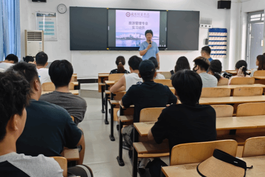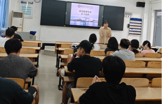 接着,旅游管理系张老师详细介绍了实习的具体安排和注意事项。她提到,本次实习将结合专业特点,安排学生深入旅游景区,担任研学导师和研学教官等职务,通过亲身体验旅游行业的实际工作,加深对专业知识的理解和掌握。同时,罗书记强调了实习过程中的安全问题和纪律要求,提醒同学们要严格遵守学校和实习单位的各项规章制度,确保实习活动的顺利进行。