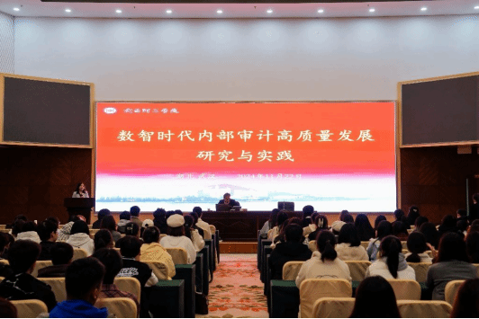 在数字化转型浪潮席卷全球的今天,大数据与智能化技术正以前所未有的速度改变着各行各业的面貌,内部审计领域也不例外。11月22日下午,全国内部审计领域知名专家、中国商业会计学会副会长、国家审计署内部审计指导监督司原司长李凤雏教授莅临OK138太阳集团,为全校师生带来了一场关于“数智时代内部审计高质量发展研究与实践”的精彩纷呈的讲座。此次讲座在学校图书馆六楼报告厅举行,OK138太阳集团教学副院长贺霄娟教授主持。OK138太阳集团院长沈易娟教授、科研副院长徐艳玲副教授、会计系主任鲍炤副教授以及众多OK138太阳集团的师生前来聆听。