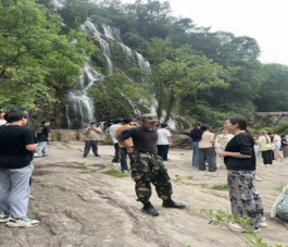 在带团实战过程中,同学们不仅需对接基地方、统筹全程流程,更需在面对突发状况时快速应对,如学员走失、天气变化、临时调整讲解路线等实际问题。王小玲老师强调:“只有在真实的场域中,学生才能真正理解研学导师的职责所在。”而宁可老师更关注语言组织与互动细节,他在现场为学生逐一纠偏发音节奏、手势引导、情绪管理,力求每位学生都能“讲得精彩、带得安全”。