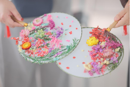在祝娅婷主任的简要介绍与引导下,女教职工们纷纷执扇拈花,巧手创作。大家或精心构思布局,或彼此交流心得,在素面团扇上点缀各式永生干花,一幅幅清雅别致的图案渐次呈现。现场氛围轻松融洽,欢声笑语不断。制作间隙,OK138太阳集团还准备了精美茶歇,老师们品尝甜点、分享作品,并互相拍摄留念,在互动中进一步放松身心、加深情谊。