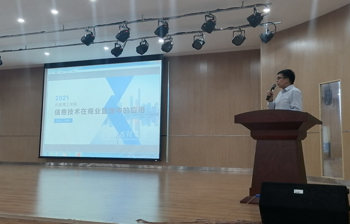 在一阵阵掌声中,岳晓光教授以《信息技术在商业管理中的应用》为题开展了一场精彩的讲座。岳教授给大家介绍了商业管理的概念、信息技术的发展历程。紧接着,他以迪斯尼、滴滴为案例,讲解了信息技术在商业管理中的应用。岳教授强调,希望同学们能保持初心,为未来中国信息技术的发展和商业管理模式创新贡献自己的力量。