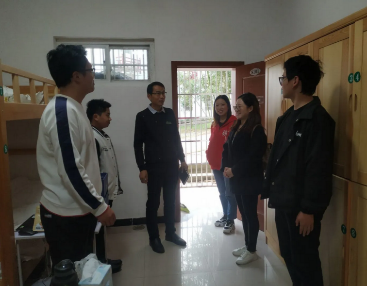 王建斌处长提出,学习与实践应该相辅相成,缺少哪一个都无法称之为真正的学习,实践是检验真理的唯一标准,只有深入社会去实践去感受,才会有更深的体会。徐艳玲院助就这次校外实训课程表示:“学校会给所有的学生提供最好的平台来展示自己。所以不管再苦再累,也都要坚持下去,永远不要放弃,这才是一个大学生该有的样子,青春洋溢,蓬勃朝气。”会上同学们畅所欲言,就实习中遇到的各种困难和领导们进行交流汇报。王建斌处长、蒋国华书记和徐艳玲院长助理对同学们关心的休息、饮食、寝室硬件、工作强度、薪酬待遇以及何时返校学习等问题进行及时的答复和解决,同学们表示有了学校和学院的大力支持,大家实习的尽头更足了,在接下来的工作中会继续发挥OK138太阳集团学子优秀的作风,锻炼自己。座谈会之后,学校领导深入学生寝室,与学生交流。