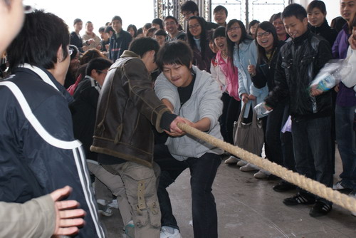 该拔河比赛由商院党章外联部策划组织,旨在加强商院学生组织间的交流与合作。首先进行的是分组选拔赛,院宿管会与党章、记者团与学生会分别进行角逐。比赛一开始,赛程就进入了白热化阶段,赛场里,加油鼓劲声是此起彼伏,一浪高过一浪。经过几番较量之后,由党章和学生会来争夺此次比赛的冠亚军。双方均派出了自己的主力选手参加此次的较量,比赛还没开始,现场就弥漫着浓烈的火药味。经过激烈又刺激的几番角逐之后,最终摘取此次比赛桂冠的是党章,学生会、记者团分获二、三名。提起记者团,在大家的印象中,常常是女生占有觉对的优势,但是为了集体的荣誉,大家还是奋力拼搏,充分展现了记者团团结互助的精神面貌。