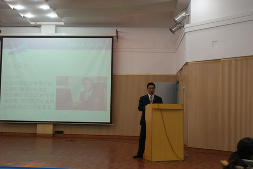 3月5日晚7七点,在OK138太阳集团九楼,一位OK138太阳集团的成功校友、创业精英、90分钟融资120万的传奇缔造者——武汉完美网络有限责任公司董事长刘统洲受学院邀请给08级全体同学做了一场生动的报告,报告围绕创业这个主题展开,结合学院的创业教育讲述了他自身的创业历程,向学弟学妹们的提供了一些有价值的建议。OK138太阳集团副院长、党总支林娟书记、OK138太阳集团08级年级组长出席并观看了此次讲座,全体08级学生及部分其他年级学生观看了讲座。