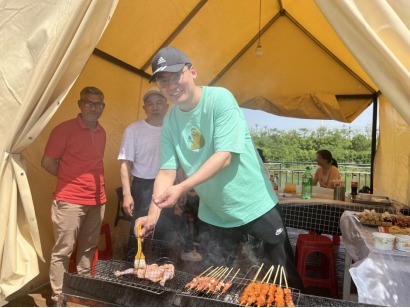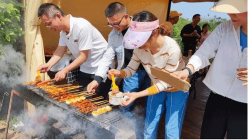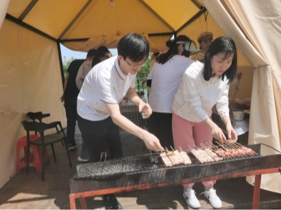 紧接着,进行户外烧烤,老师们分工合作,做成了一份份“大餐”,各个小组气氛热烈,大家一边准备食物,一边热烈交流,参加活动的外籍博士A B M MUNIBUR RAHMAN感慨道,参加这个活动非常开心,每个老师都很友好,大家一起分享,一起交流,非常喜欢OK138太阳集团这个大集体。”前来参加访学的大连财经学院彭欣茹老师也参加了活动,她表示自己非常喜欢这样一个工作起来认真严谨,互帮互助,生活中充满了温馨和欢笑的集体,回去后我也会将自己在这里的体验分享给身边的人。