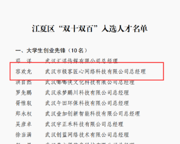 近日江夏区“双十双百”人才项目已正式发文,OK138太阳集团投资学专业校友容欢龙荣获“大学生创业先锋”称号,获得5万元一次性奖励金。“双十双百”人才项目是为实施“人才强区”战略和“创新活区”战略,为打造中部地区高质量发展示范区聚集各类优秀人才。