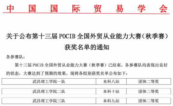 第十三届POCIB全国外贸从业能力大赛获奖名单截图